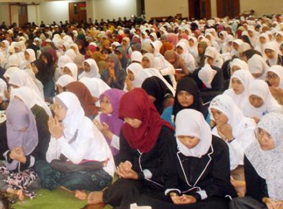 GEMA-Dibuka dengan pembacaan shalawat dan alunan musik rebana, khotmil Quran perdana yang diselenggarakan di gedung Sport Center (SC) dihadiri oleh Wakil Rektor I Dr. Zainuddin, M.A dan seluruh pengasuh Ponpes Ma’had Al Jami’ah. Kegiatan yang telah menjadi tradisi serta ciri khas UIN Maliki Malang ini merupakan wujud pengamalan dari empat pilar UIN Maliki, yaitu kedalaman spiritual, keagungan akhlak, keluasan ilmu dan kematangan profesional (26/9).